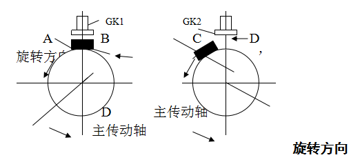 A ,开始送料位置,此时切刀向上运动,刚离开底刀,步进电机可顺利地将被制料送出(图1)。 B, 高位停机位置,此时切刀向上运动,至最高点,停机,可使烫切刀不致于破坏被制料(图2)。 C ,拖料极限位置,此时切刀向下运动,刚到底刀处,此时步进电机不能再送料,否则,被制料会堵于刀内或拉断(图3)。 D, 整本脱袋位置,此时切刀向下运动,刚到最低点,整本机在此位置将拉针拔出,再把整本制品推出(图4)。 A’取样逻辑位置,位于 A与D之间。 ![]()